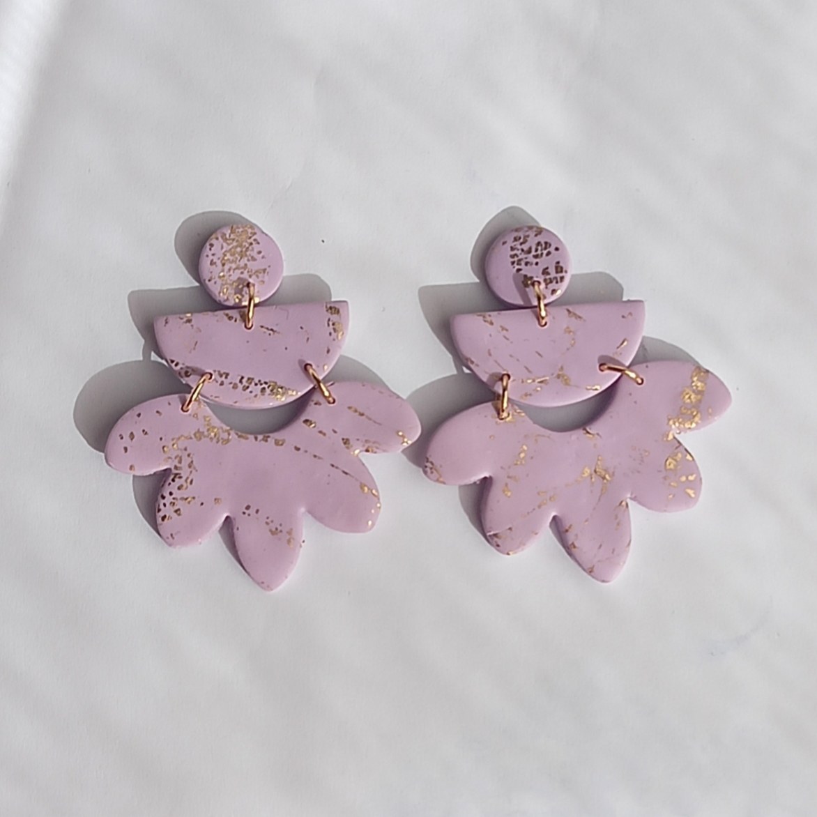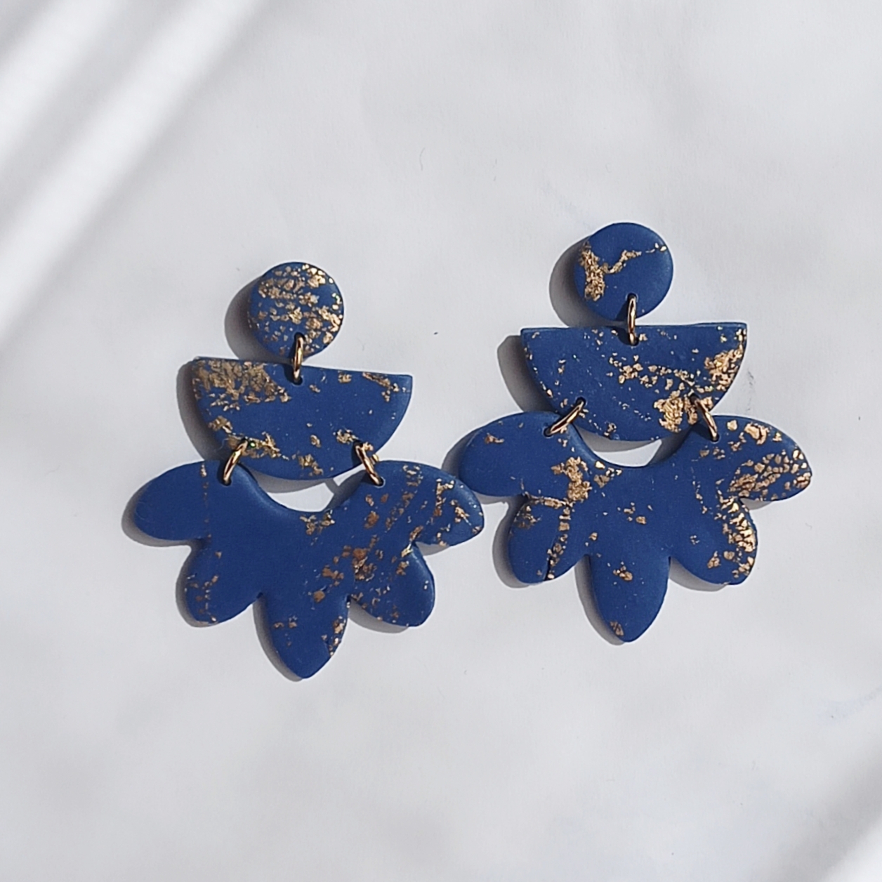 Pendientes de arcilla polimérica hechos totalmente a mano. Formado por tres piezas, con un toque dorado. Un accesorio ligero pero con gran presencia, ideal para darle un toque sofisticado a cualquier look.