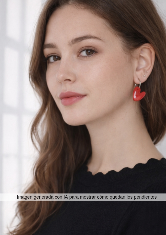 Pendientes con un corazón marmolado rojo y acabado brillante.